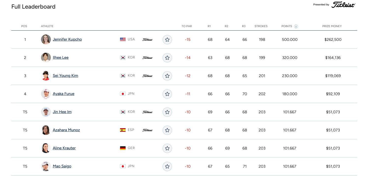 준우승 상금은 16만4136달러(약 2억2,400만 원)로, 이일희에게는 기록 면에서도, 심리적 의미 면에서도 값진 순간이었습니다.