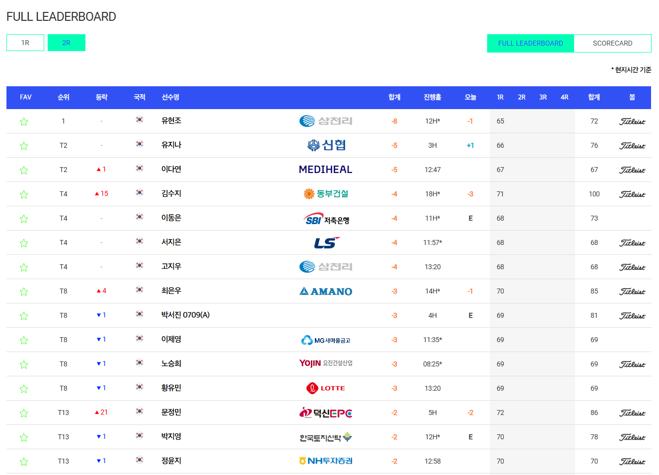 - 유지나 : 보기 없이 버디 6개, 6언더파로 단독 2위! 작년 드림투어에서 돌아와 큰 활약을 예고했습니다.
