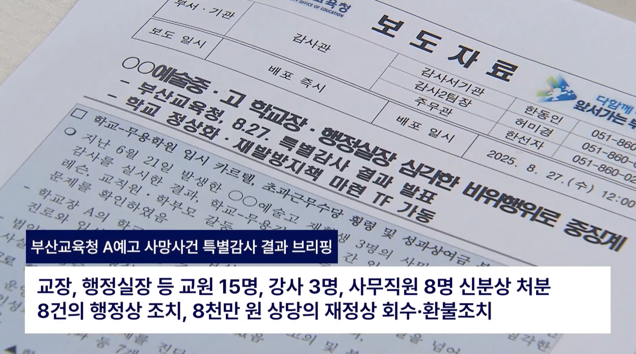 🚨 '이래도, 예술 교육을 논하겠습니까?' 부산 예술고를 뒤흔든 '비리 카르텔'의 충격적 실체세 명의 학생이 떠난 슬픈 현장에 숨겨져 있던 검은 그림자, 그 진실이 드러나다안녕하세요, 잡학다식(雜學多識)입니다. 고요해야 할 학교에 긴장감이 감돌고, 희망과 꿈으로 가득해야 할 교정은 깊은 슬픔에 잠겨 있었습니다. 세 명의 어린 무용 전공 학생들이 연이어 세상을 떠나는 비극적인 사건이 발생했기 때문입니다. 이 믿을 수 없는 아픔 뒤에는 어떤 진실이 숨겨져 있었을까요?2025년 8월, 부산광역시교육청이 한 예술고등학교에 대한 특별 감사 결과를 발표했습니다. 이 발표는 단순한 감사가 아니었습니다. 학교 내부에서 벌어진 상상을 초월하는 비리와 부패의 민낯을 고스란히 드러내며, 슬픔에 잠겨 있던 우리 사회에 다시..