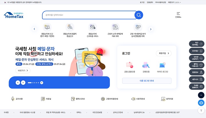 최근 국세청을 사칭한 피싱 메일이 급증하고 있으며, 신고·납부 시즌 등 국민이 관심 가질 시기를 노려 악성코드를 배포하는 수법도 점점 교묘해지고 있습니다. 주소·도메인을 실제와 유사하게 조작하는 사례가 많아, 발신자 정보만 확인해서는 구별이 어렵습니다. 잘못 클릭하면 개인정보 유출, 금전 피해 등 심각한 사고로 이어질 수 있습니다. 이런 피해를 막기 위해 국세청에서는 홈택스 ‘발송메시지 진위확인 서비스’를 도입해, 국민 스스로 공식 메시지 여부를 즉시 조회할 수 있도록 했습니다.✉️ 국세청 사칭 피싱 메일, 나도 당할 뻔?! 신고·납부 시즌엔 더욱 주의하세요!얼마 전에 “국세청” 명의로 종합소득세 관련 이메일이 도착했어요.처음엔 5월 신고 기간이라 별 의심 없이 열어보다가,“어? 국세청은 원래 공식 알림..