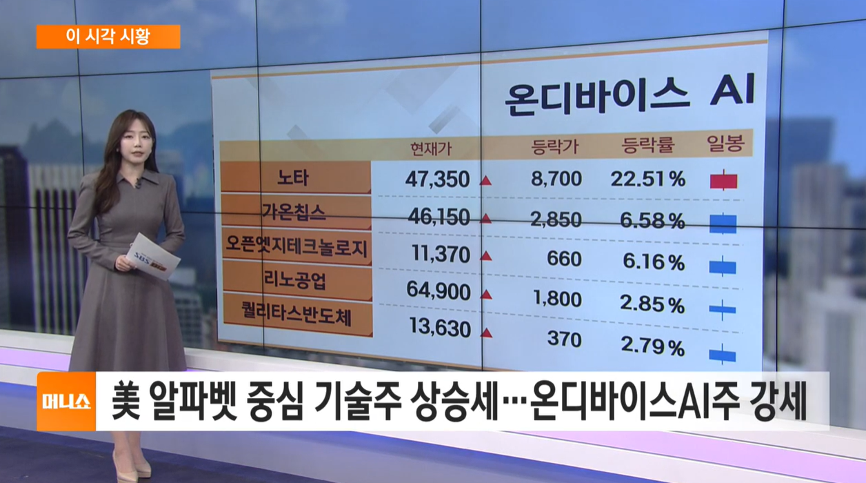 - 오픈엣지테크놀로지: 6% 가까운 상승세로 11,350원.