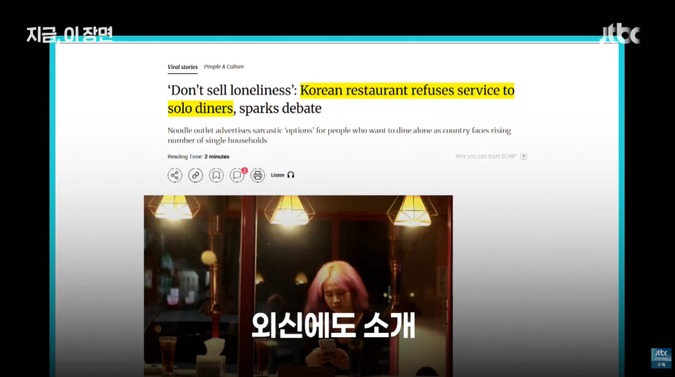 - 외국인의 이해 불가: 외국인 관광객들에게는 "혼자 밥 먹는 일"을 차별하는 문화가 이해하기 힘든 관행이라는 점을 꼬집었습니다.