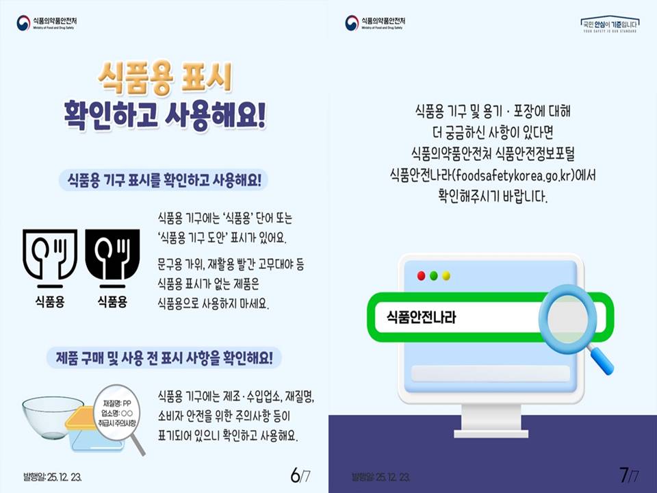 - 절대 금지: 문구용 가위로 김치를 자르거나, 재활용 빨간 고무대야에 김장을 담그는 행위 등 식품용 표시가 없는 제품을 식재료에 직접 사용하는 것은 피해야 합니다.