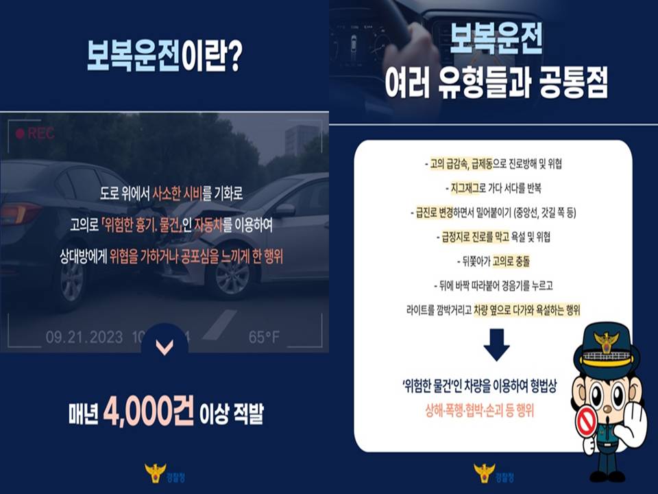 - 집중 단속 결과: 부산 동부경찰서에서는 단 4개월 만에 난폭·보복운전자 10명을 무더기로 입건하는 등 경찰의 단속도 강화되고 있습니다.
