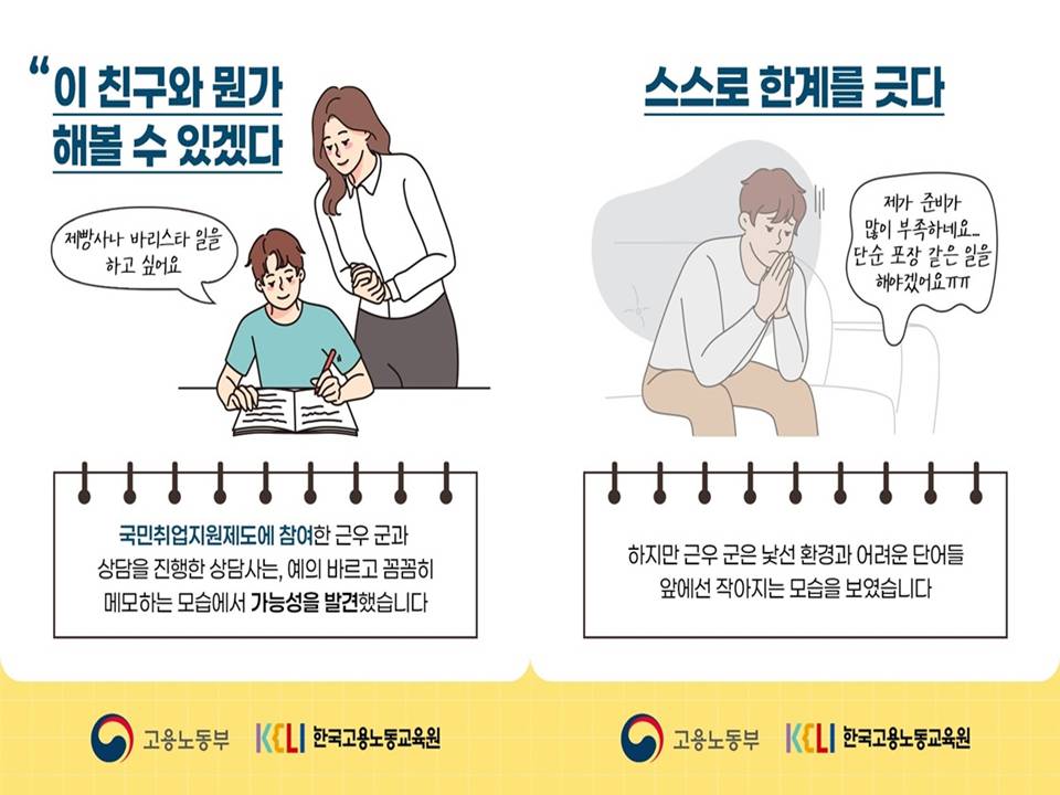 - 첫 상담의 기억: "제빵사나 바리스타 일을 하고 싶어요." 근우 군의 눈빛은 진지했습니다. 상담사는 근우 군이 예의 바르게 행동하고, 상담 내용을 하나하나 꼼꼼히 메모하는 모습에 감동했습니다.