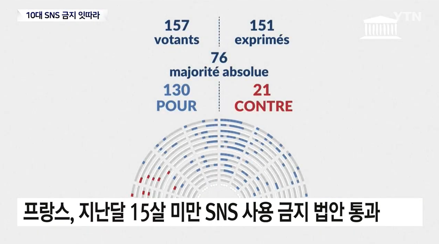 - 법안 통과: 프랑스 하원은 15세 미만 청소년의 SNS 사용을 금지하는 법안을 압도적인 표차로 통과시켰습니다.