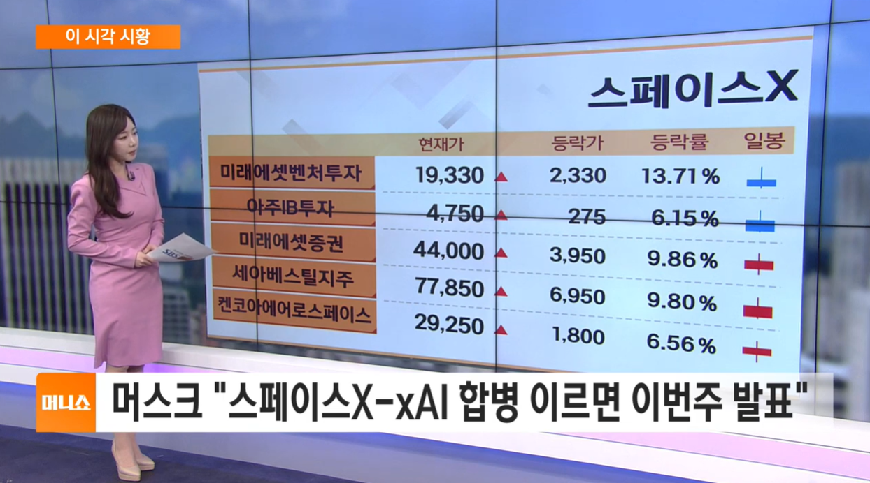 일론 머스크의 우주 기업 스페이스X와 인공지능 기업 xAI의 합병 소식이 전해지면서 관련주에 불이 붙었습니다.