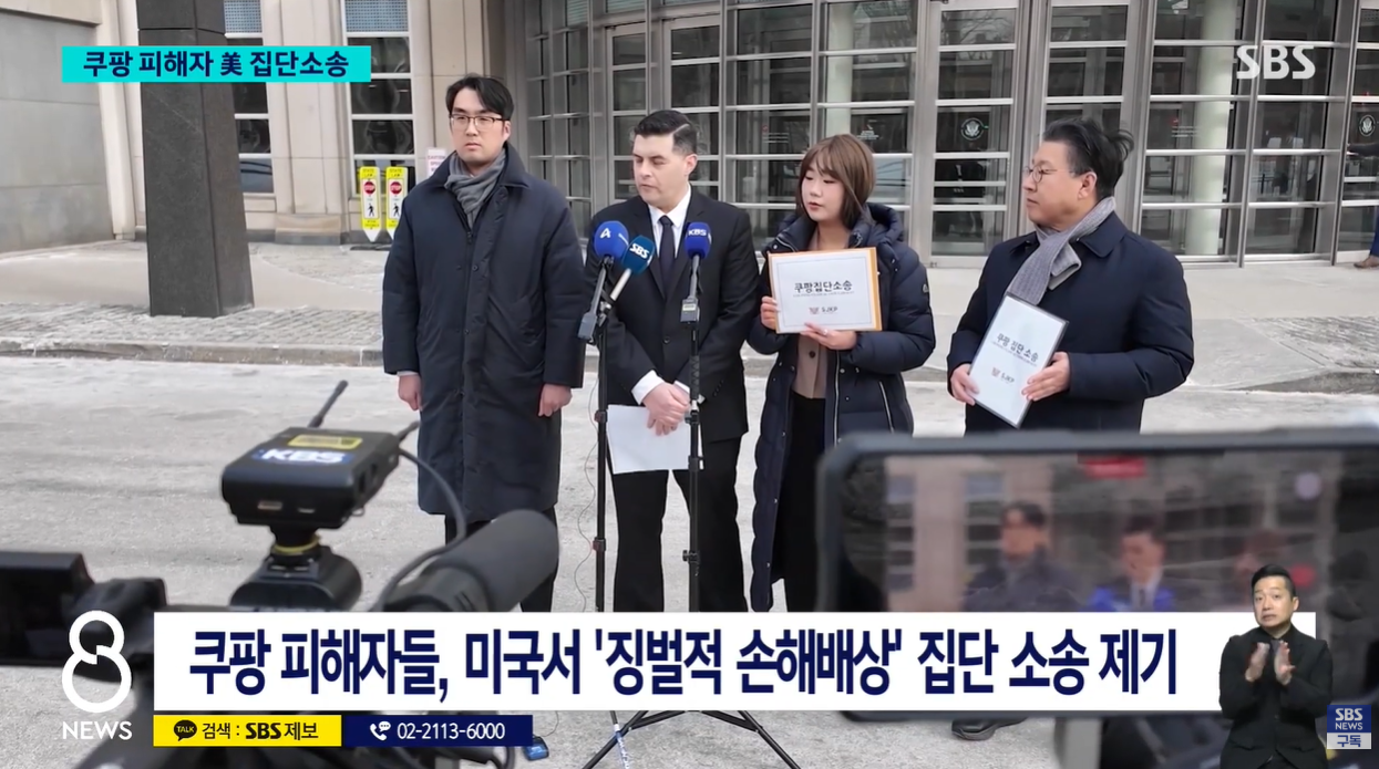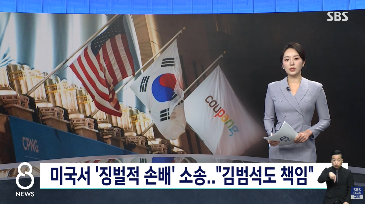 SBS 뉴스: "쿠팡 김범석도 책임"…미국서 집단 소송 제기 전체 영상 보기 영상을 통해 현지 기자의 생생한 리포트와 소송 대리인단의 입장을 직접 확인해 보세요!