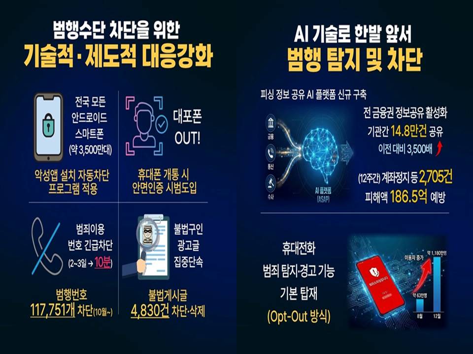- 범정부 드림팀: 경찰청을 필두로 과기정통부, 금융위, 방통위, 금감원, KISA, 금융보안원이 하나로 뭉쳤습니다.