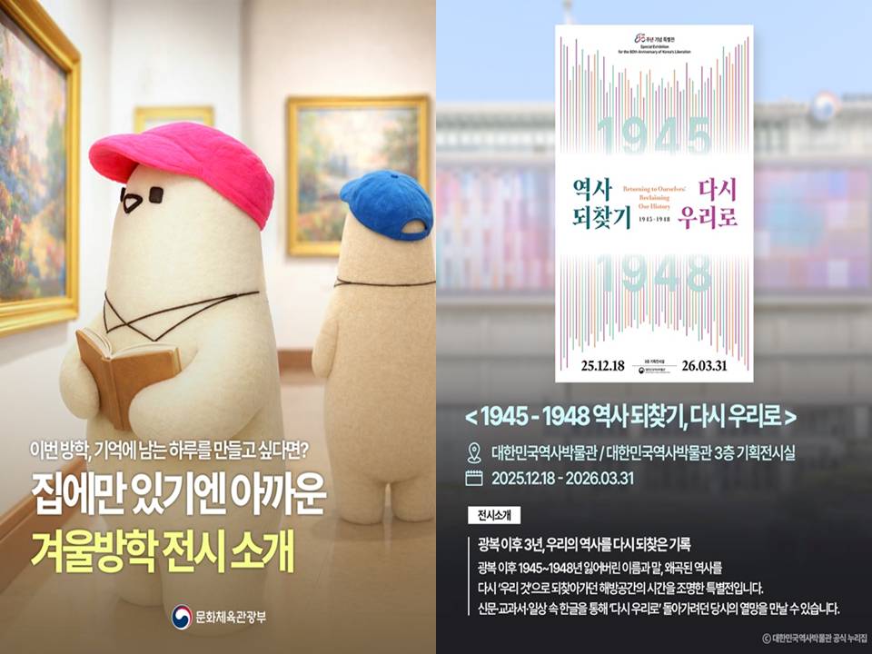 겨울방학은 짧지만 그 안에서 쌓은 경험은 평생의 자산이 됩니다. 단순히 지식을 전달하는 전시를 넘어, 우리의 뿌리를 찾고 타인의 문화를 존중하며 미래의 가치를 생각해 보는 알찬 전시들!