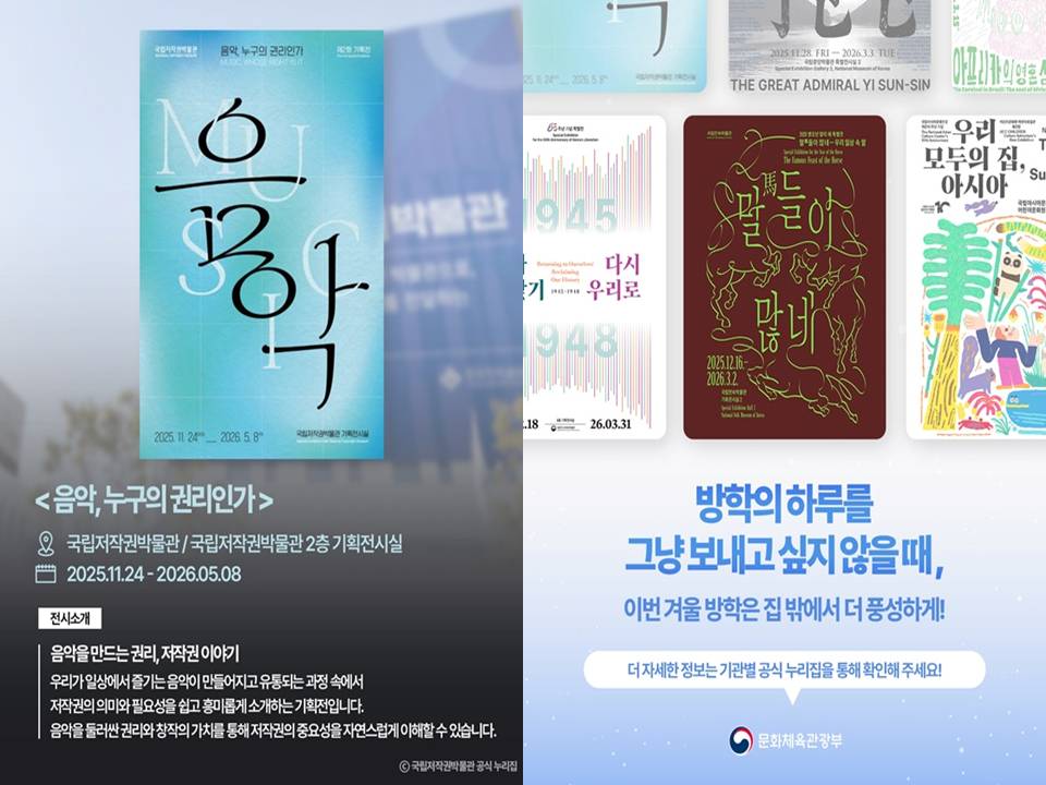 - 내용: 매일 듣는 음악 속에 담긴 '저작권'의 가치를 쉽게 풀어냅니다. 창작자의 권리를 이해하고 창작의 가치를 존중하는 마음을 길러주는 유익한 기획전입니다.