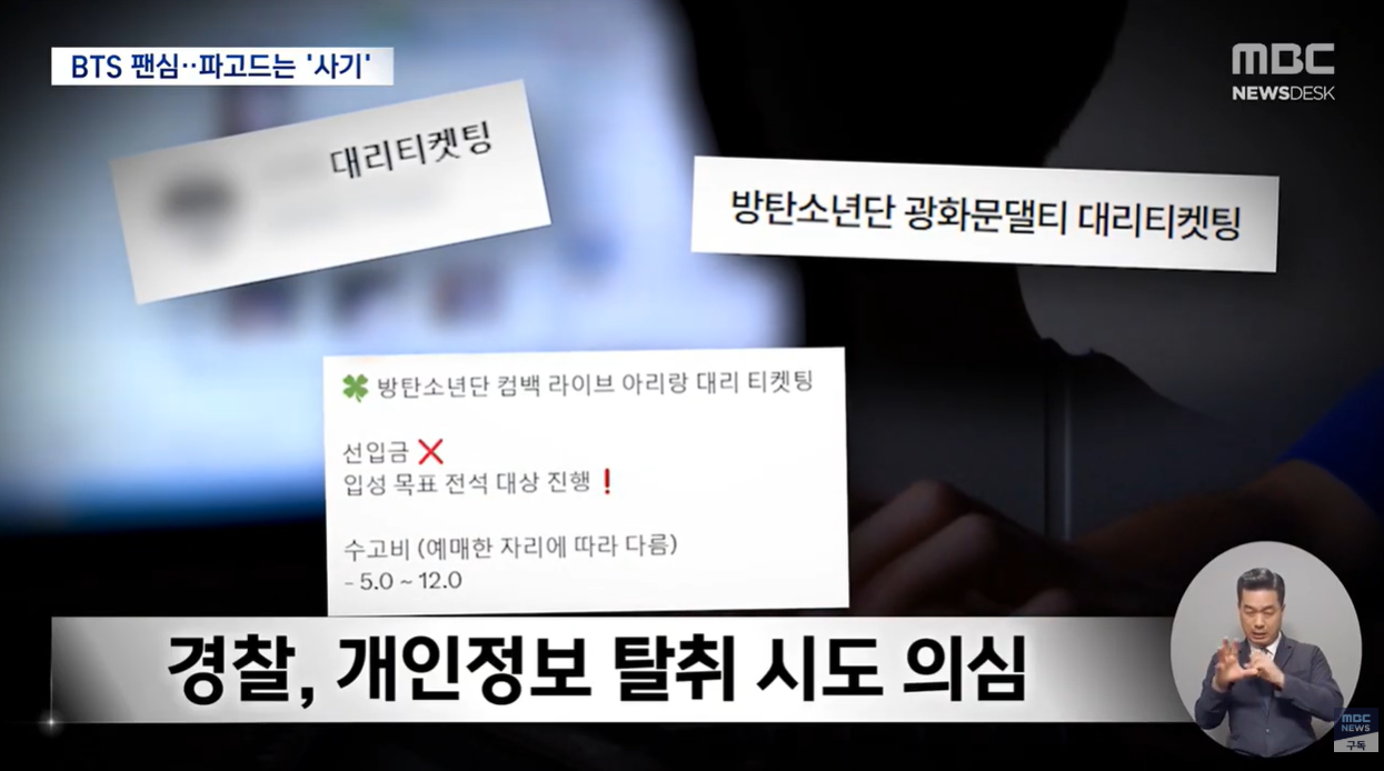 MBC 뉴스: BTS 열풍 파고드는 사기꾼 리포트 보기 영상을 통해 경찰이 주의를 당부하는 실제 사기 게시물 사례와 팬들의 생생한 목소리를 직접 확인해 보세요!