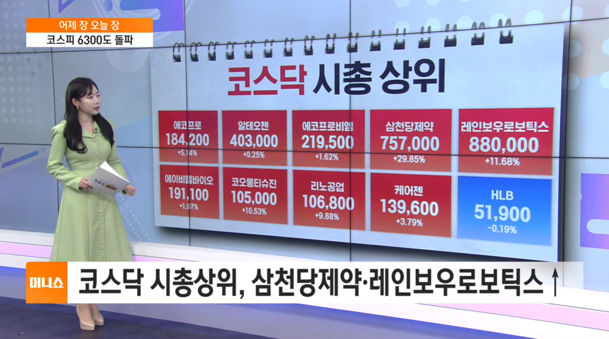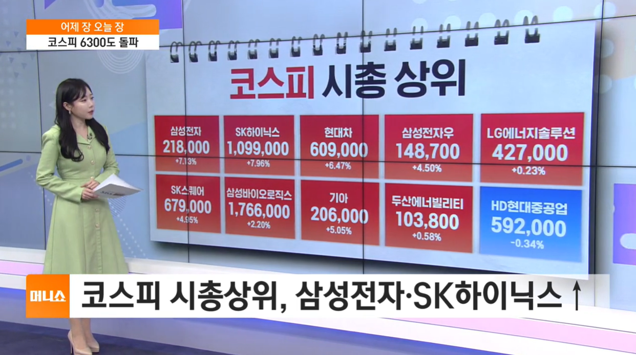 - 코스피 3.7% 폭등: 종가 기준 6,300선을 가뿐히 넘어서며 사상 최고치를 새로 썼습니다.