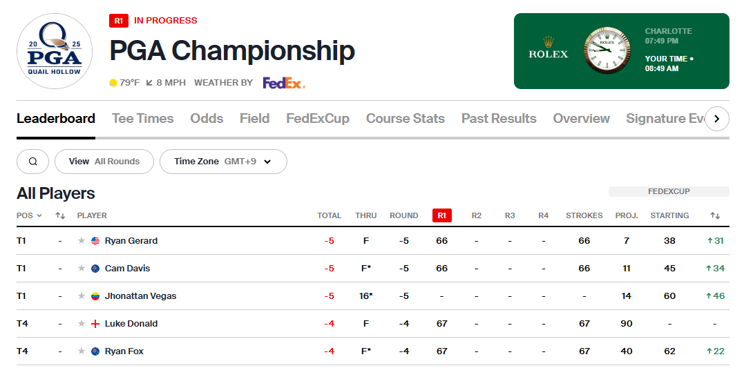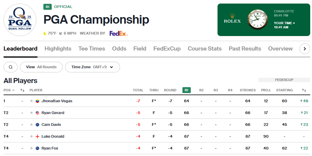 2025년 5월, 세계 남자 골프의 별들이 총출동한 제107회 PGA 챔피언십이 미국 노스캐롤라이나 샬럿의 퀘일 홀로 클럽에서 개막했습니다. 세계 랭킹 1~3위인 스코티 셰플러(미국), 로리 매킬로이(북아일랜드), 잰더 쇼플리(미국)가 같은 조에서 맞붙으며 팬들의 기대를 한 몸에 받았죠. 하지만 막상 뚜껑을 열어보니 이른바 ‘빅3’는 첫 라운드에서 다소 아쉬운 모습을 보이며 기대를 충족시키진 못했습니다.🌟 셰플러, 그래도 버텨낸 세계 1위셰플러는 1라운드에서 이글 1개와 버디 4개를 기록했지만 보기 2개, 더블보기 1개로 흔들리는 모습을 보이며 2언더파 69타로 공동 20위에 그쳤습니다. 물론 이는 전체 선수들 중 상위권 성적이긴 하지만, 그가 지난 메이저 대회에서 보여준 독보적인 퍼포먼스를 생각하면 ..